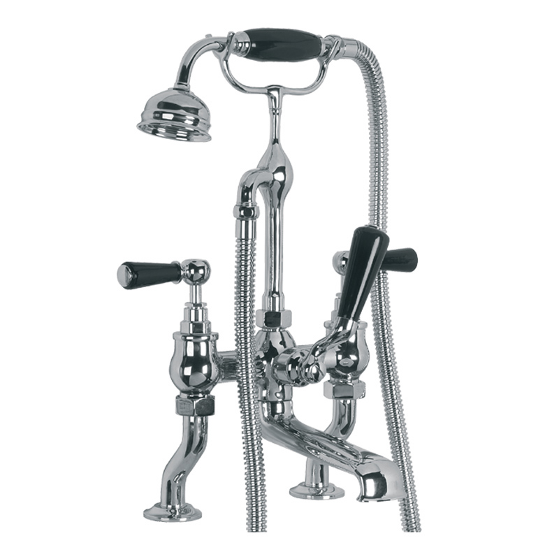 Classic deck mounted bath shower mixer (3/4") with black levers