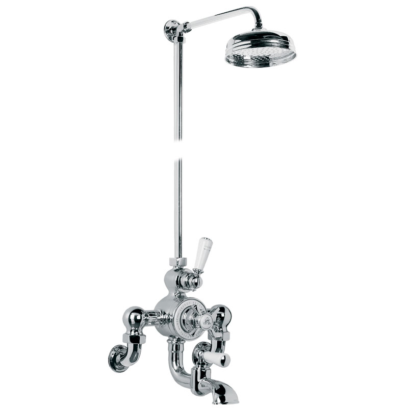 Exposed thermostatic BSM with riser kit, 8" rose and adjustable riser pipe bracket Wall mounted