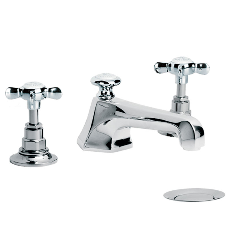 Mackintosh white cross handle three hole basin mixer with pop-up waste