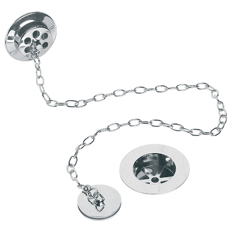 Classic bath waste kit with brass overflow, brass plug and oval chain