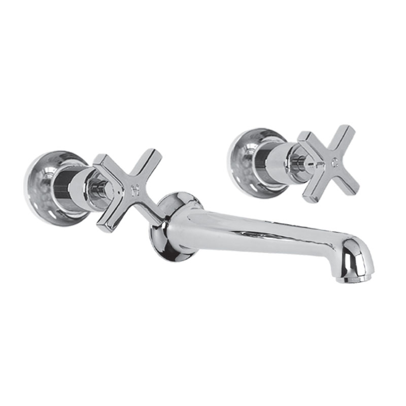 Classic wall mounted three hole basin mixer with Mackintosh cross handles