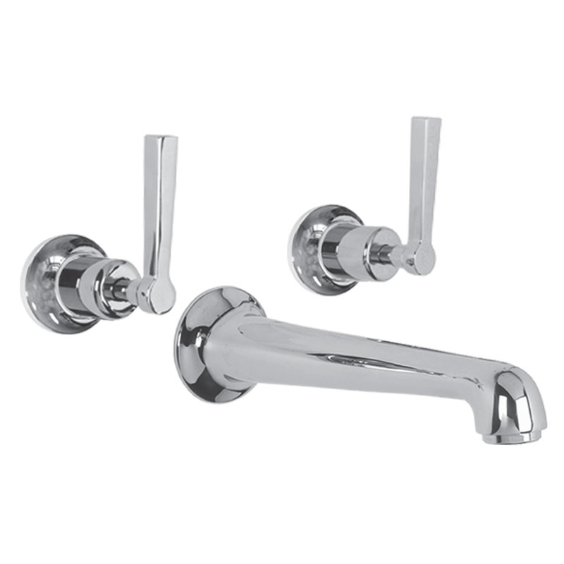 Classic wall mounted three hole basin mixer with Mackintosh levers