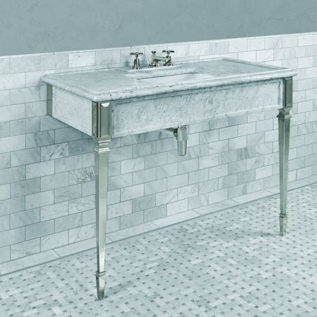 The Lefroy Brooks range of consoles are made from the finest Italian Carrara marble and finished with polished chrome detailing.